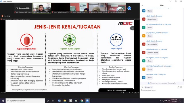 25 November 2021 | Aktiviti TerkiniPada 24 November 2021, masa 10.00 pagi hingga 1.00 petang seramai 99 peserta PEDi terlibat dengan program Kursus eRezeki Rangers, anjuran MDEC secara webinar. Encik Haziq Hissham merupakan Jurulatih eRezeki Rangers telah berkongsi pelbagai maklumat yang berkaitan dan bermanfaat seperti berikut.