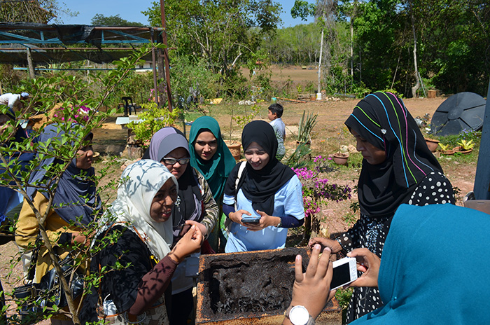 - Melihat proses yang diberi keterangan oleh pengusaha ladang kelulut di ladang ternak kelulut sambil melihat sendiri sarang didalam bongkah pokok