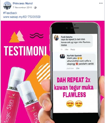 Puan Asmaa merupakan seorang surirumah sepenuh masa yang membuat perniagaan secara online dengan menjadi dropship. Beliau menjual barangan wanita seperti tudung dan terkini membuat tempahan makanan berasaskan kek secara C.O.D.