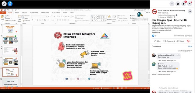 22 Februari 2021 | Aktiviti TerkiniPusat Internet Komuniti Gunung Hilir dengan kerjasama Pusat Internet Komuniti Pokok Sena telah membuat taklimat Klik Dengan Bijak (KDB) secara atas talian melalui streamyard di facebook page. Penerangan selama 40 minit tentang apa itu Klik Dengan Bijak (KDB), dan huraian tentang kebaikan dan keburukan internet telah dibentangkan melalui facebook page.