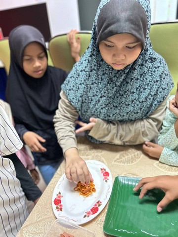 Pelajar diberi taklimat tatacara penyediaan makanan dengan bahan-bahan yang tersedia bagi menambah kemahiran mereka “soft skill” dan kreativiti dalam asas masakan. Bahan yang diperlukan adalah mee segera, “paper rice”, sosej dan juga isi ketam. Pelajar kemudian dikehendaki untuk menggulung dan menghias mengikut kreativiti sebelum menjamu selera. Mereka sangat seronok menyertai kelas masakan kerana dapat bersama-sama rakan dan menjalinkan hubungan erat antara satu sama lain.
