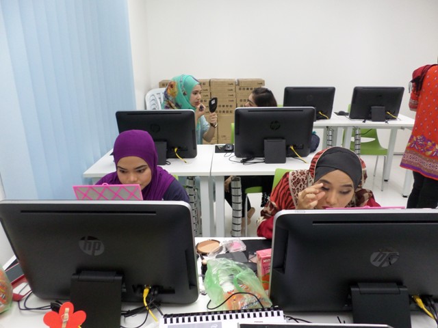 - Peserta diberi tunjuk ajar mengenai asas solekan dan diberi peluang untuk adaptasi pada wajah masing-masing.