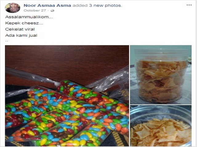 Puan Asmaa merupakan seorang surirumah sepenuh masa yang membuat perniagaan secara online dengan menjadi dropship. Beliau menjual barangan wanita seperti tudung dan terkini membuat tempahan makanan berasaskan kek secara C.O.D.
